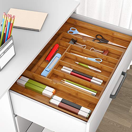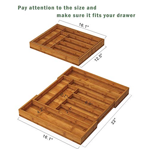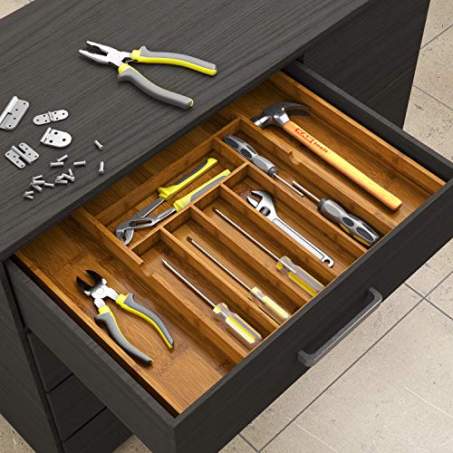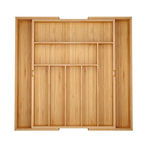 BAMEOS - باموس منظم ادراج حامل ادوات مائدة من الخيزران صينية قابلة للتوسيع لتنظيم المائدة والسكاكين والملاعق وادوات المطبخ والمرآب