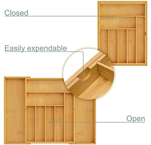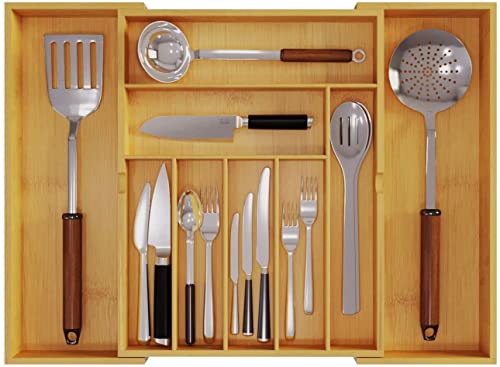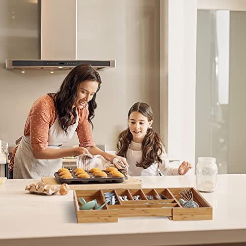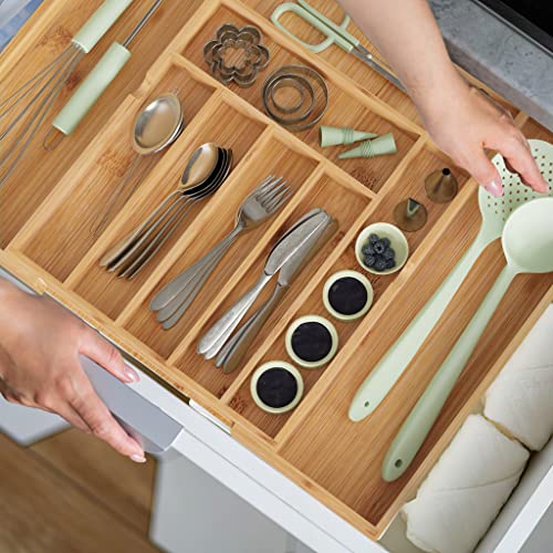 BAMEOS - منظم أدراج، منظم أدوات مائدة، صينية أدوات مائدة قابلة للتوسيع والتعديل، منظم درج من البامبو للمطبخ والحمام من باموس (أصفر)