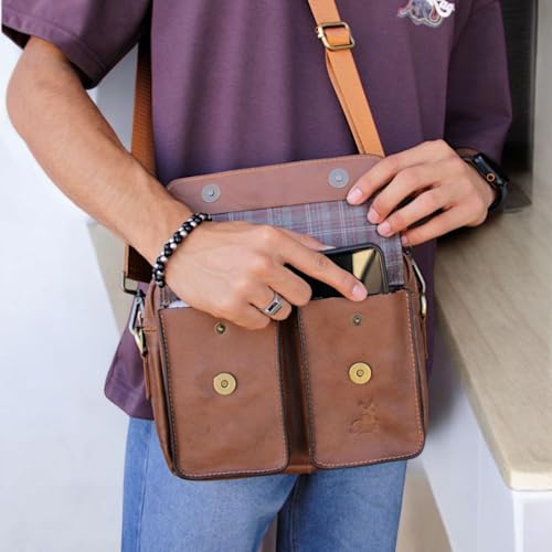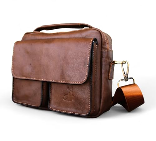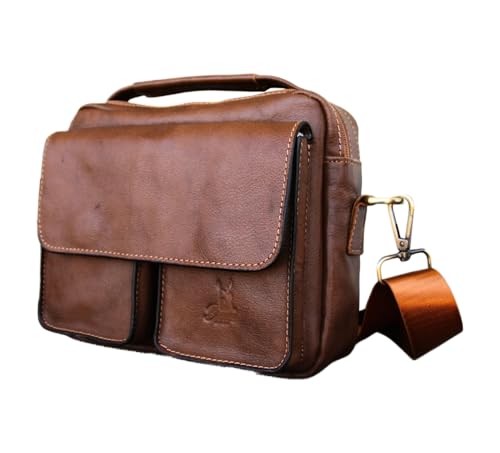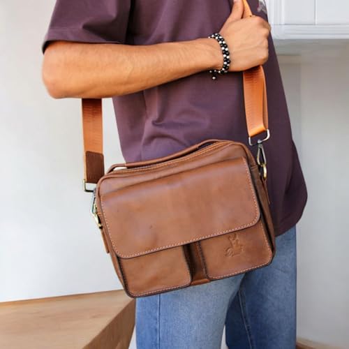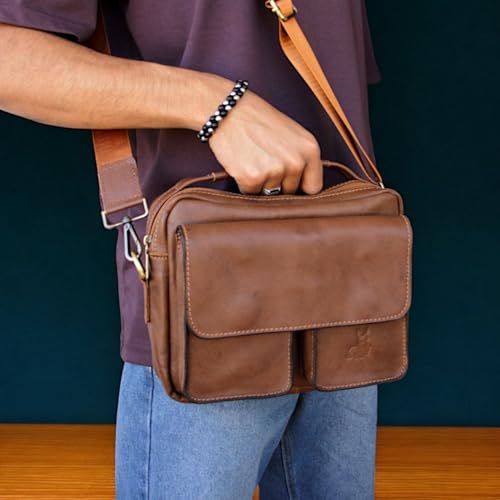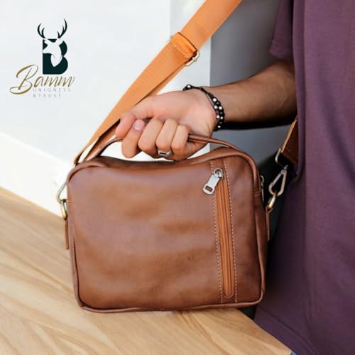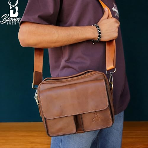Bamm - حقيبة ماسنجر من بام للرجال مقاس 25x20سم - جلد طبيعي متعددة الجيوب للاستخدام اليومي