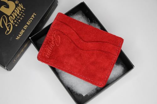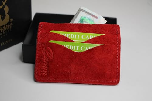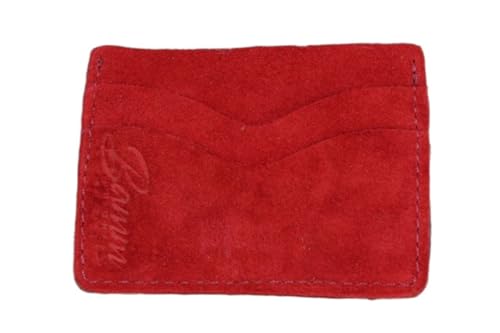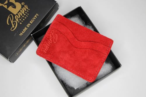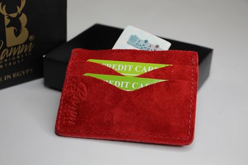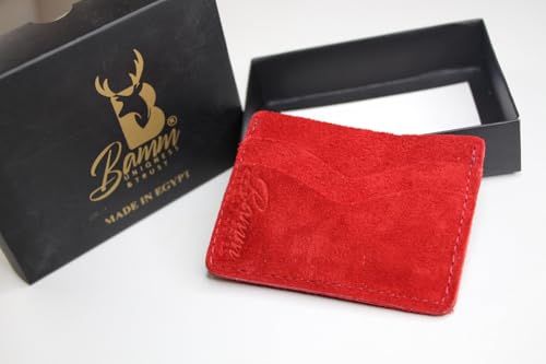 Bamm - محفظة من بام مصنوعة من جلد السويد للجنسين، بتصميم عصري باللون الأحمر، نحيفة مع فتحات متعددة للبطاقات