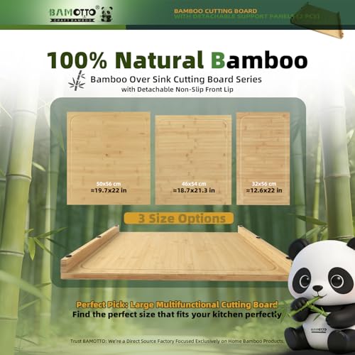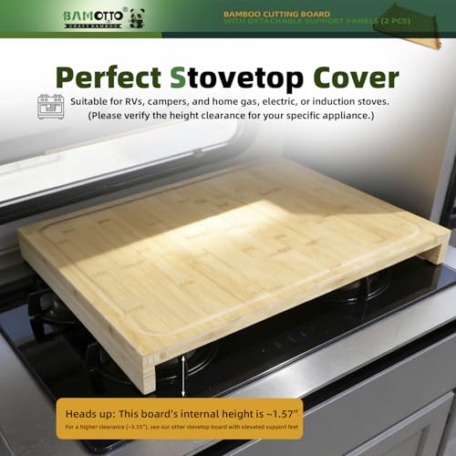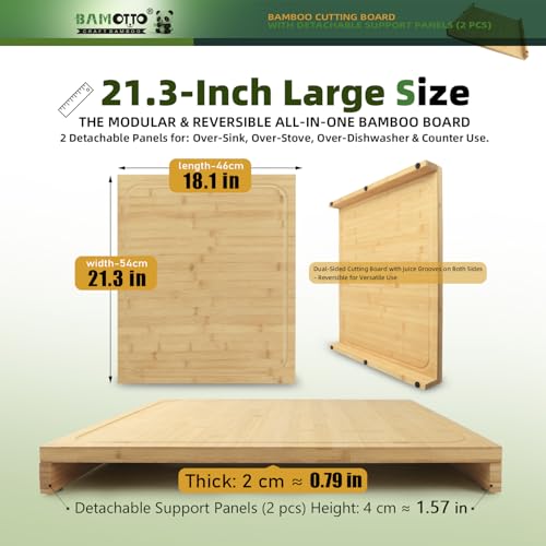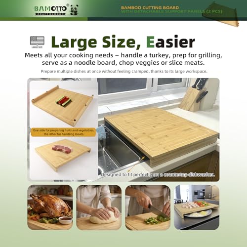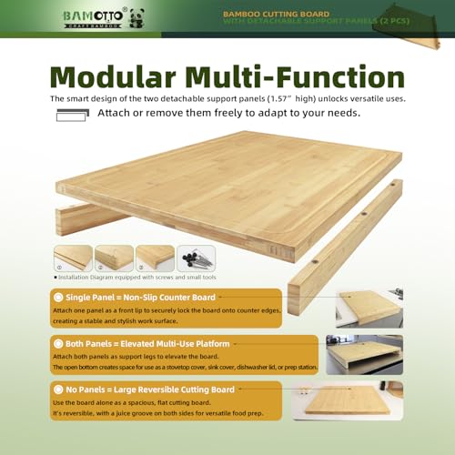BAMOTTO CRAFTBAMBOO - لوح تقطيع بامبو كبير بحواجز وأرجل قابلة للفصل - غطاء غسالة أطباق لسطح العمل، غطاء موقد، لوح عجن لمهام التحضير الكبيرة من باموتو كرافت بامبو مقاس 46 سم × 54 سم