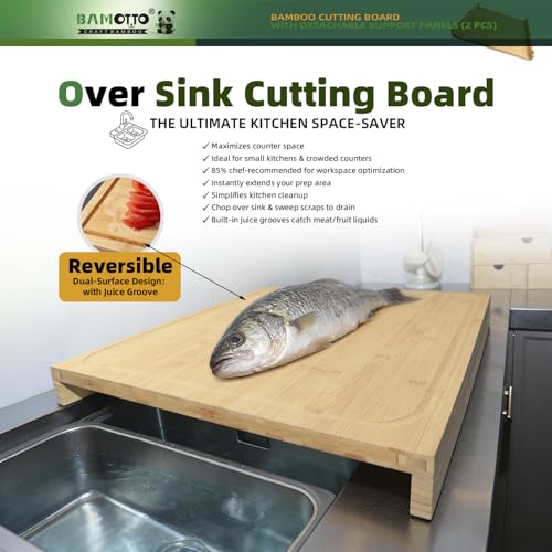 - لوح تقطيع وغطاء غسالة أطباق لسطح العمل بامبو كبير بحواجز أمامية وخلفية قابلة للفصل (تعمل كأرجل دعم مزدوجة).