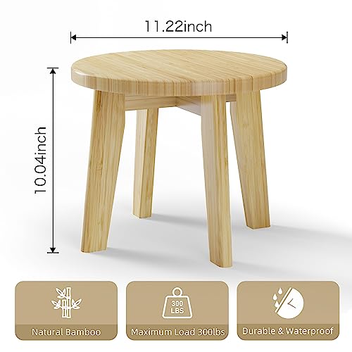 Bamsanritz - كرسي درج للاطفال والكبار من بامسانريتز - كراسي خشبية صغيرة محمولة من الخيزران، مقعد خشبي متين مانع للانزلاق 300 باوند للمكتب والحمام والمطبخ وحامل النباتات 10 انش (دائري)