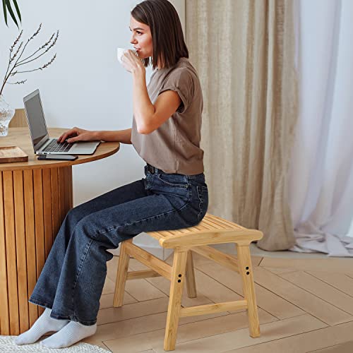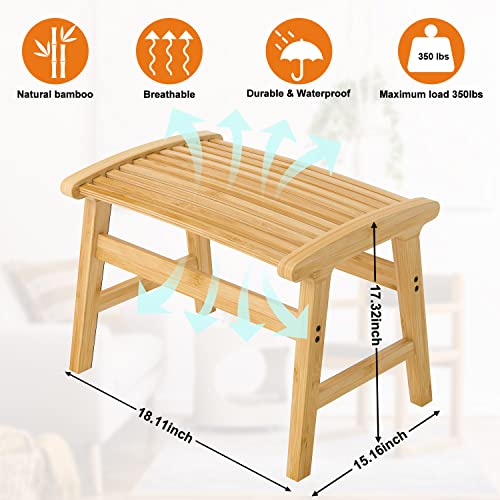 Bamsanritz - مقعد استحمام من الخيزران متين بمقعد ارتداد ناعم مقاس 45.72 سم للأطفال والبالغين للحمام وغرفة المعيشة وغرفة النوم والشرفة من بامسانريتز، يتحمل حتى 158.76 كجم