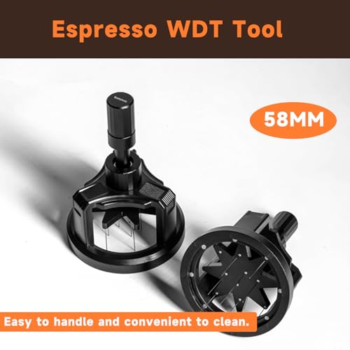 - تتميز أداة دبليو دي تي الممتازة بمقبض من الألومنيوم المؤكسد، جنبًا إلى جنب مع حامل تقليب إسبريسو مدمج وقمع قياس وأداة دبليو دي تي وحامل للحصول على مساحة عمل مرتبة وتنظيف سهل. متوافقة مع E61 وفلير 58 واي سي ام وروكيت وسانريمو وسينيسو وسلاير وفي بي ام وغيرها من فلاتر القهوة 58 ملم لآلات الإسبريسو الأخرى.