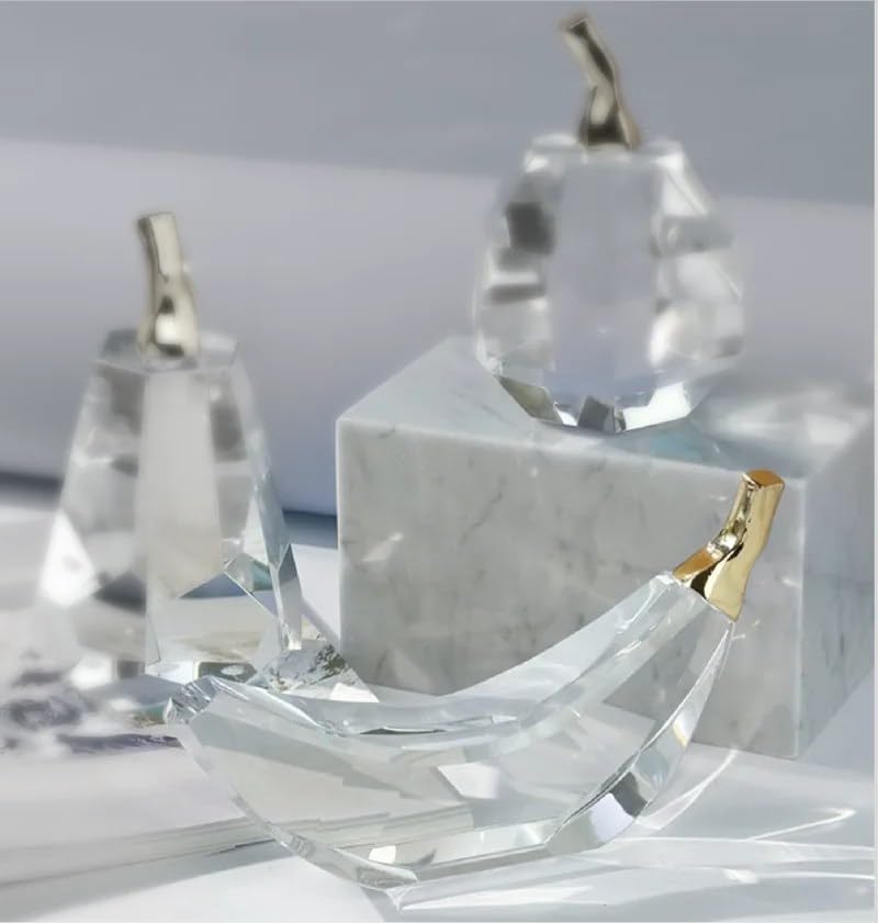 - الأبعاد: تتميز القطعة المنحوتة بمزيج مذهل من اللمسات النهائية الشفافة والمعدنية، مما يخلق عرضًا مرئيًا أنيقًا