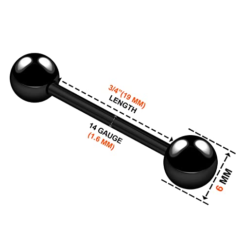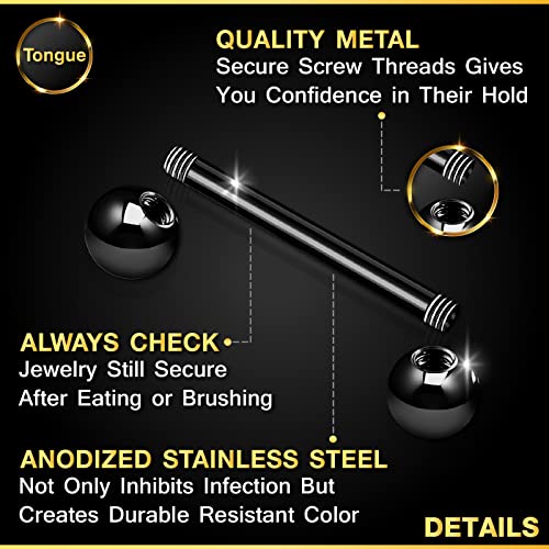 BanaVega - حلقتا لسان من فولاذ ستانلس ستيل، لسان تعشيق 14 بمقياس 5/8 16 و6 مم، مجوهرات تخترق لسان الكرة، انظر المزيد من الالوان, ستانلس ستيل