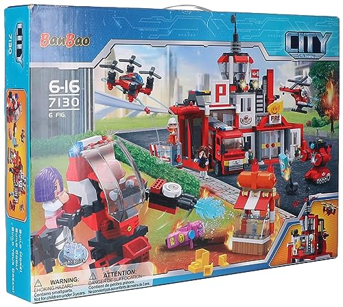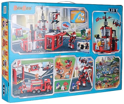 BanBao - مكعبات بناء محطة إطفاء الحريق من بان باو، برج إنقاذ الحريق لعبة شاحنة مع طقم روبوت 1081 قطعة، موديل B7130
