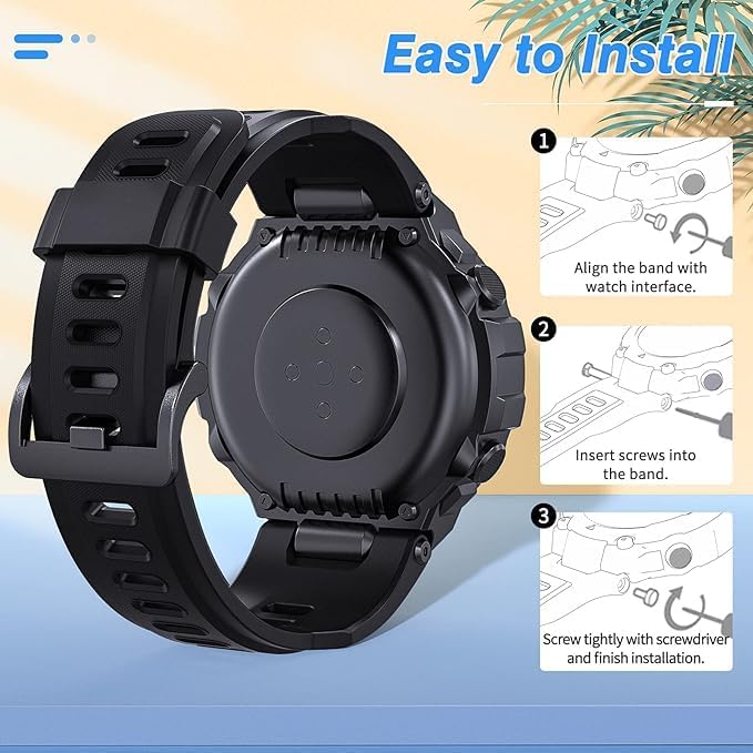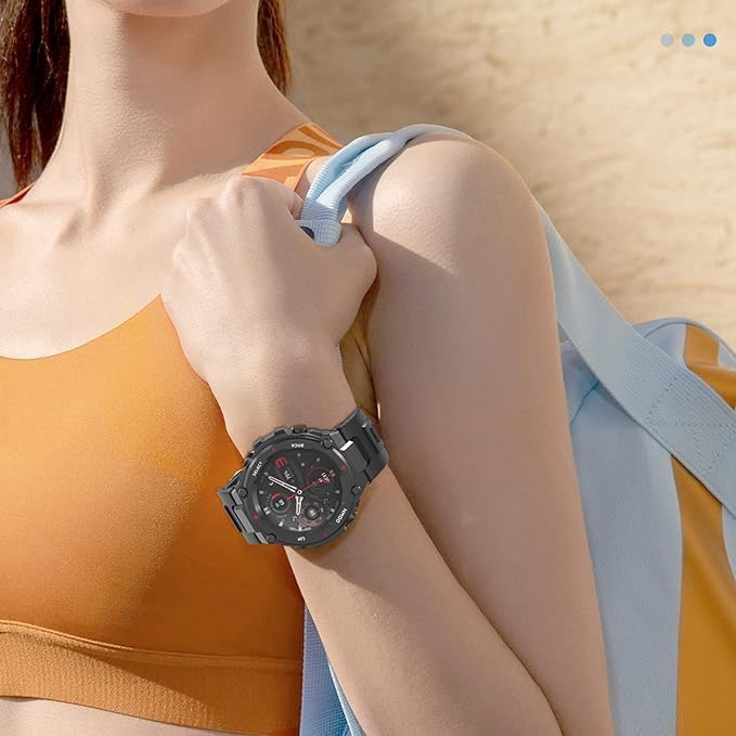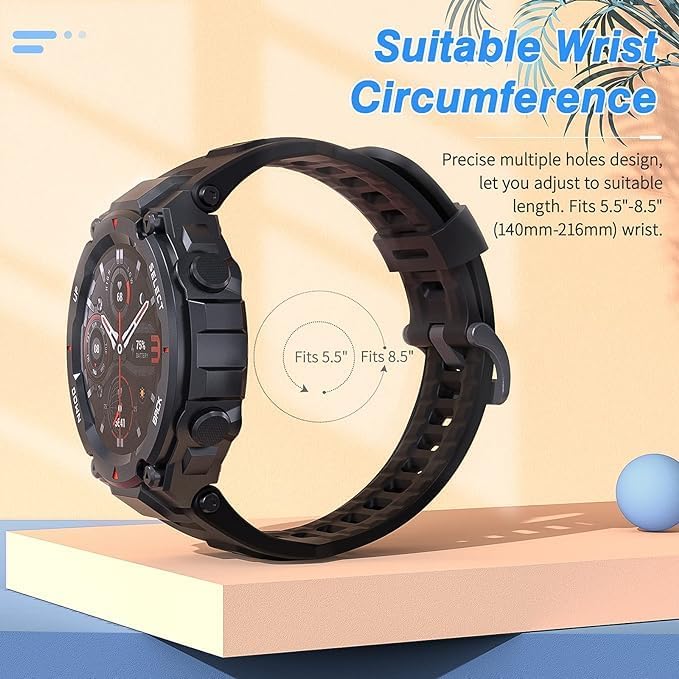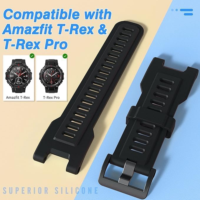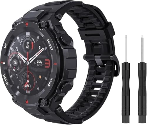 ELMO3EZZ - سوار بديل من السيليكون الناعم قابل للتعديل ولطيف على البشرة المعز لساعة ذكية هوامي تي ريكس-تي ريكس برو مع 2 أداة تركيب - لون أسود