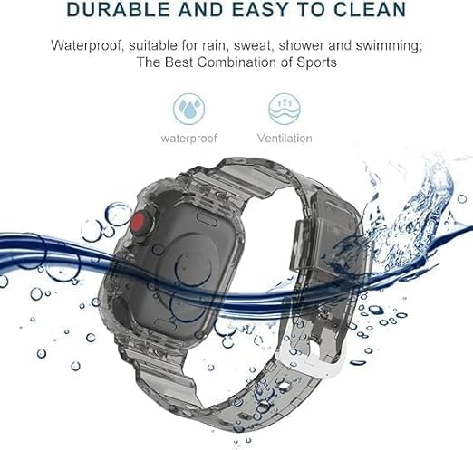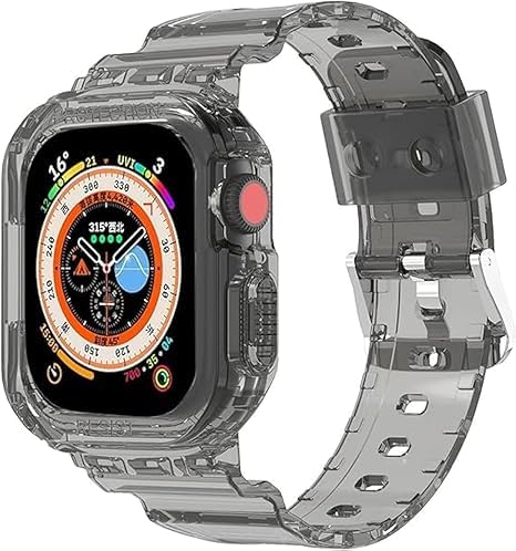 Generic - سوار مع حافظة ممتصة للصدمات متوافق مع ساعة اي ووتش الترا 49 ملم، سوار معصم بديل للرجال والنساء بنمط عسكري متين رياضي متين (اسود شفاف)