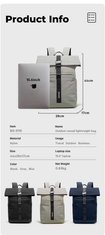 BG FUTURE AESTHETICS - شنطة ظهر للاب توب كاجوال للرجال من بانج 3115 لون اسود رائج بيع جديد بالجملة ناعمة وخفيفة الوزن ومقاومة للماء