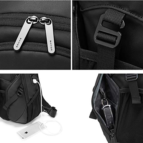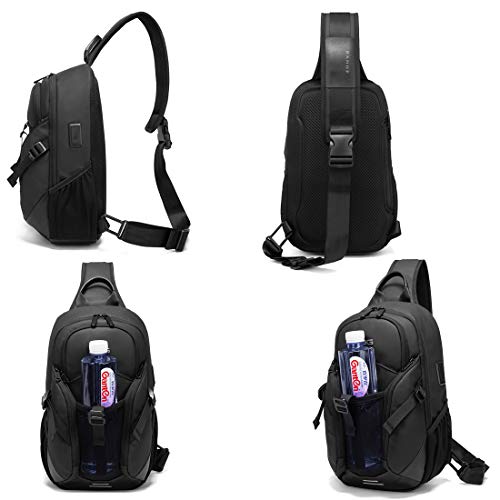 BANGE - بانج شنطة كروس للجنسين مضادة للسرقة ومقاومة للماء من البولي يوريثين الحراري مع شحن USB (اسود)، اسود