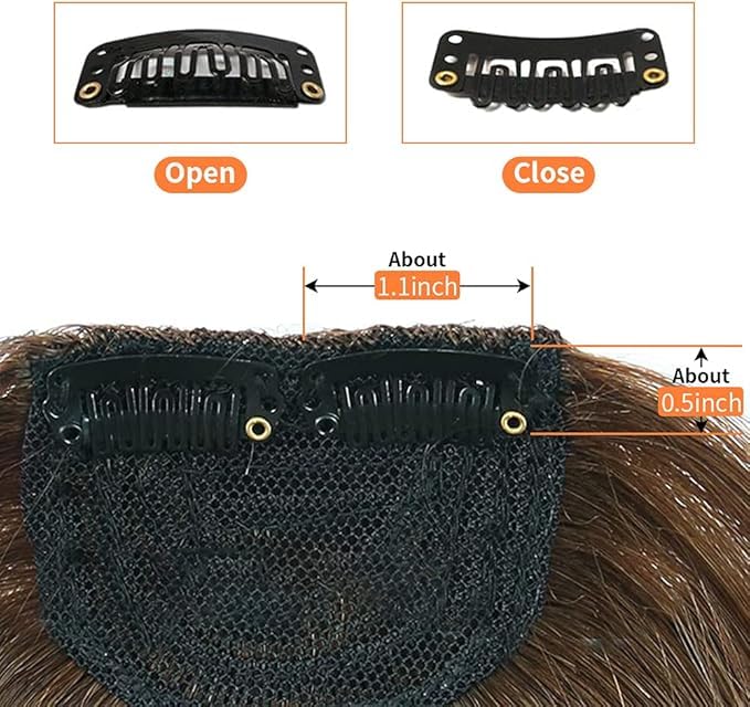 - مشبك أنيق في الغرة الجانبية الفرنسية يمكن أن يجعل وجهك يبدو أصغر، مثالي للأشخاص ذوي الوجه المستدير والوجه المربع. تأتي الغرة في قطعة واحدة منفصلة، يمكن أن تناسب أي حجم رأس بسهولة.