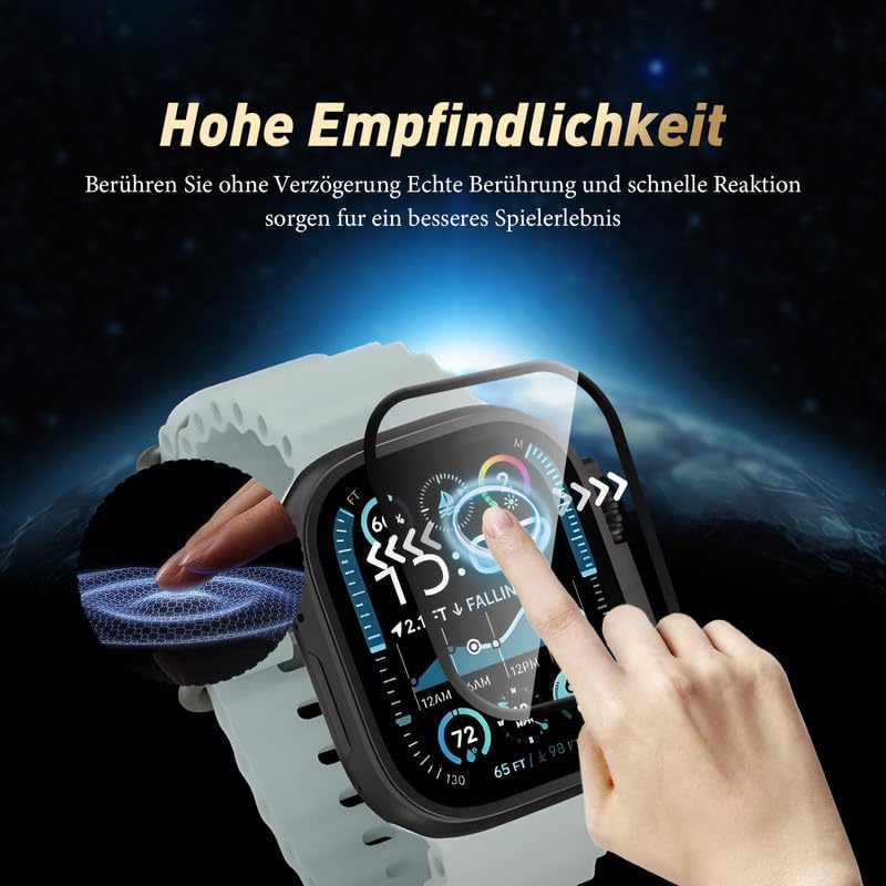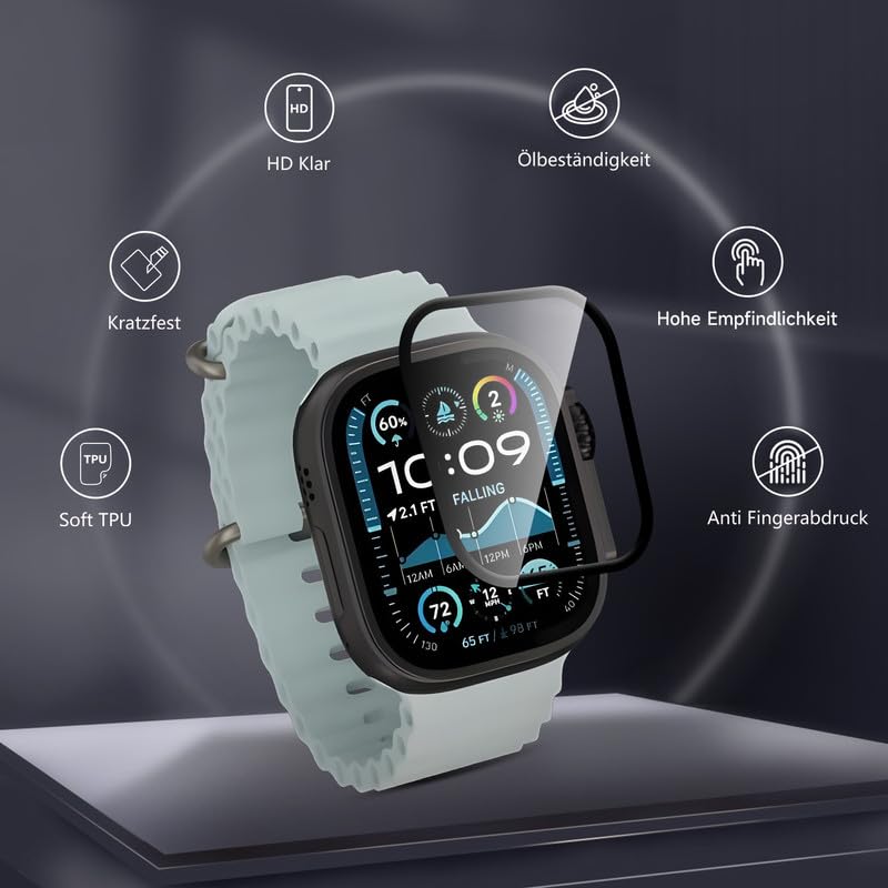 - بولي يوريثين حراري ناعم ومقاوم للخدش: مع سمك الزجاج الرائد في الصناعة من البولي يوريثين الحراري الناعم، يمكن للزجاج المقوى المتين للغاية والمقاوم حماية فعالة لساعة ابل الترا 3 49 ملم من الكشوط والخدوش غير المرغوب فيها بواسطة المفاتيح وبعض المواد الصلبة الأخرى.