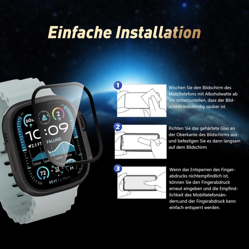 - مصمم لساعة ابل الترا 3 مقاس 49 ملم: تم تصميم شاشة الحماية من الزجاج المقوى خصيصًا لساعة ابل الترا 3 مقاس 49 ملم. مصنوعة من مواد عالية الجودة. يناسب الزجاج المقوى الشاشة تمامًا ويغطي الشاشة بالكامل، مما يمنح شاشة هاتفك أفضل حماية.