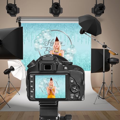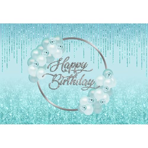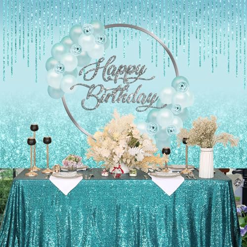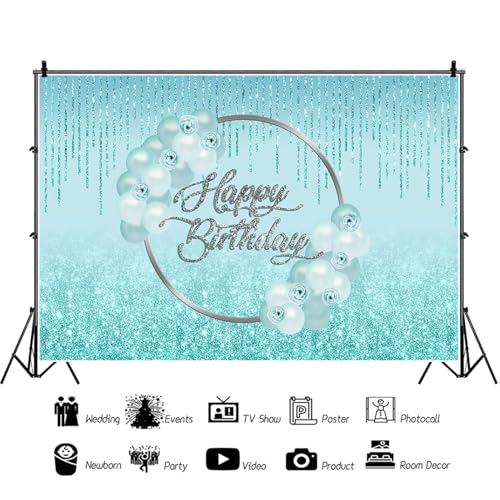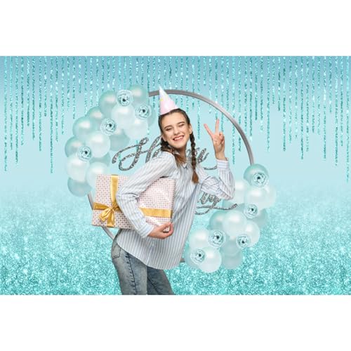 Baocicco - خلفية عيد ميلاد لامعة بلون أزرق فاتح، مقاس 1 م × 1.5 م، بالونات بلون أخضر مينت، لافتة عيد ميلاد لامعة بشراشيب، خلفية تصوير فوتوغرافي رائعة لحفلات عيد الميلاد 16 و18 و30 و40 للبنات من باوسيسكو