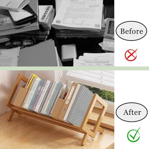 - 【مادة الخيزران المختارة】اختيار أفضل الخيزران المكرر، ثابت وجميل. مادة الخيزران القوية متينة ولا تتشوه، مما يوفر مأوى ثابت لكتبك.