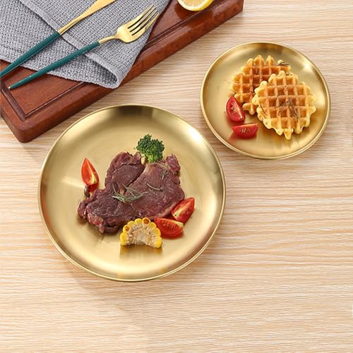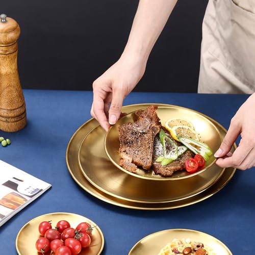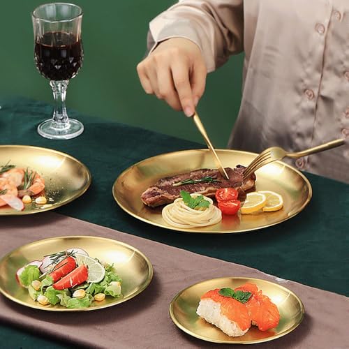 BAOPUSHIDAJILI - أطباق من الفولاذ المقاوم للصدأ 304 خفيفة الوزن من باوبوشيداجيلي، صينية عشاء للمقبلات والمكرونة والشوربة والفواكه، لون ذهبي (الطول 17 سم، الارتفاع 1.2 سم)