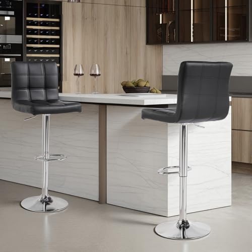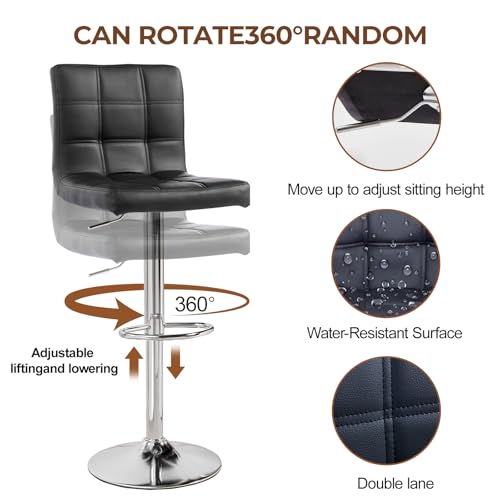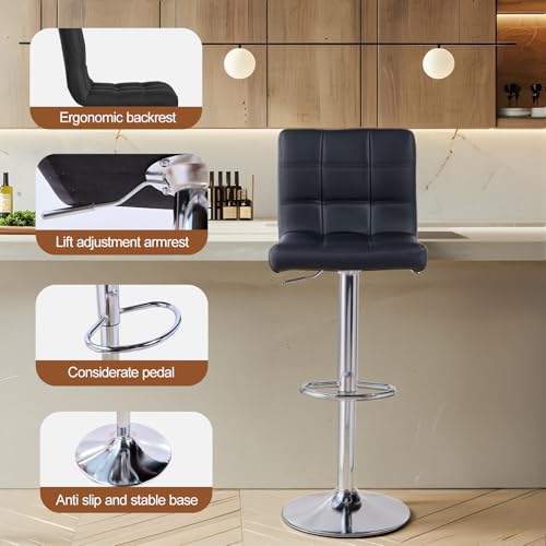 Panana - كراسي بار كوبية بارتفاع قابل للتعديل من الجلد الصناعي دوار 360° مع مسند ظهر ومسند للقدمين لبار الإفطار والطاولة والمطبخ والمقاعد المنزلية (لون أسود، مجموعة من مقعدين)