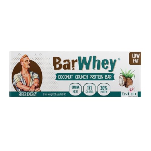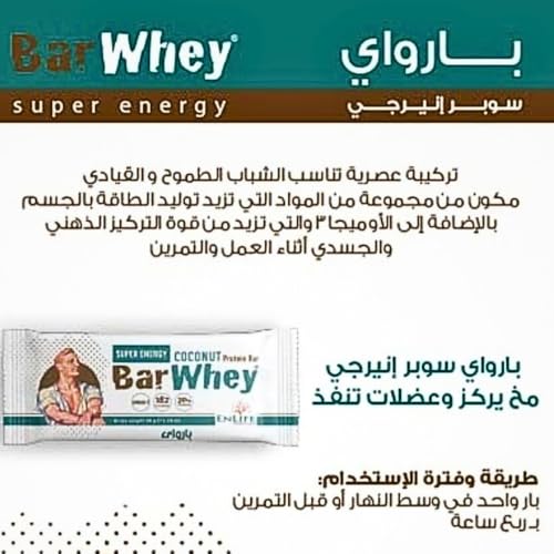 Bar Whey - لوح بروتين جوز الهند عالي البروتين منخفض الدهون وفائق الطاقة من بار واي، معزز للطاقة مع اوميجا 3 ودعم عالي البروتين 30% و182 سعرة حرارية بنكهة جوز الهند الاستوائي - وجبة خفيفة صحية، 12 قطعة