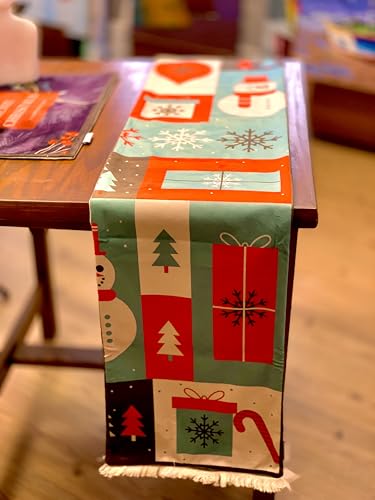 Generic - مفرش طاولة بنمط مكعبات الكريسماس من باراتي ارت مقاس 180 × 32 سم | قماش شمواه غير قابل للانزلاق على المطاط | ديكور عصري للعطلات