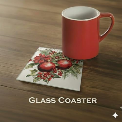 Generic - مجموعة قواعد أكواب زجاجية للكريسماس مكونة من قطعتين من باراتي ارت، نمط احتفالي احمر وهولي وينتر، مقاس 10 ×10 سم، قواعد أكواب فاخرة من الخشب والزجاج للمكتب والطاولة