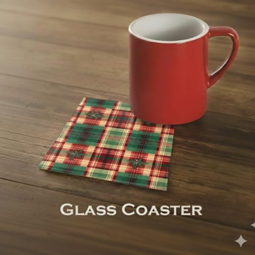 Generic - مجموعة قواعد اكواب زجاجية خشبية للكريسماس من باراتي ارت مكونة من قطعتين، تصميمات فاخرة للعطلات (تارتان منقوشة، بوينسيتيا، هولي وشموع)، حماية طاولة ديكورية، 10 × 10 سم