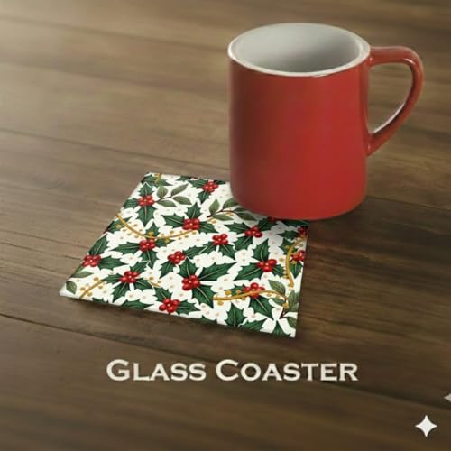 Generic - مجموعة قواعد اكواب زجاجية خشبية للكريسماس من باراتي ارت مكونة من قطعتين، تصميمات عطلة فاخرة (بونسيتيا، شموع، هولي)، حماية طاولة ديكورية، 10 × 10 سم