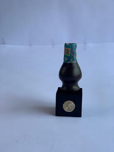 Generic - فازة صغيرة بقاعدة خشبية من فن الكولاج على الفخار، زخرفة فانوس باللونين الأسود والتركواز - ديكور مكتب حرفي مصري أصيل من باراتي ارت