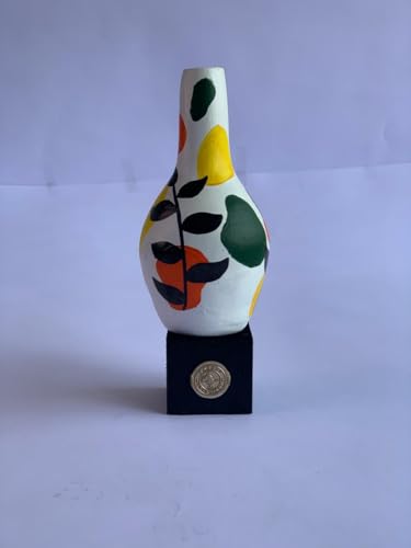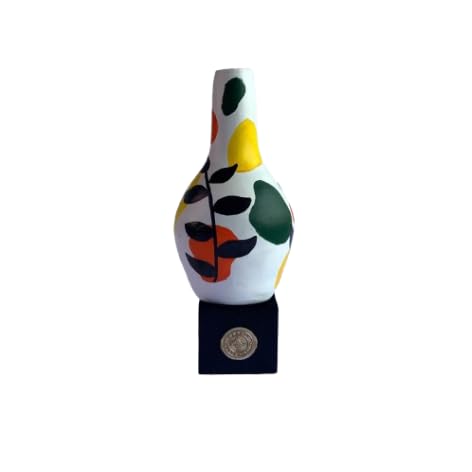 Generic - مزهرية فخار مرسومة باليد من باراتي ارت (متوسطة) لون ابيض تجريدي بوب وزخارف اوراق شجر سوداء - سيراميك حرفي مصري - ديكور مكتب معاصر