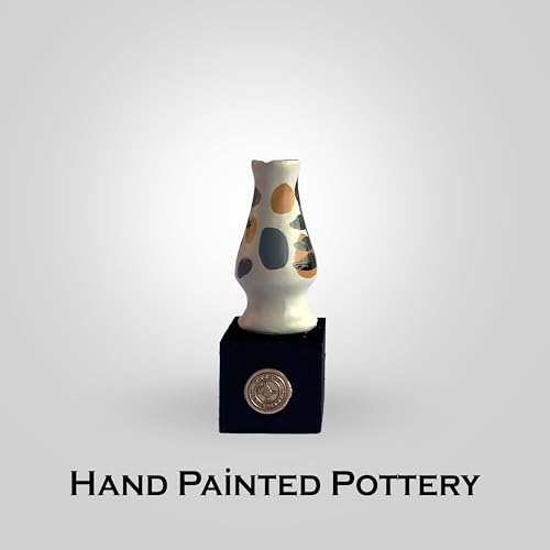 Generic - مزهرية فخار مرسومة باليد من باراتي ارت (صغيرة) - سيراميك مرقط باللونين الابيض والرمادي - منحوتة حرفية فريدة مصنوعة يدويا - ديكور مكتب عصري
