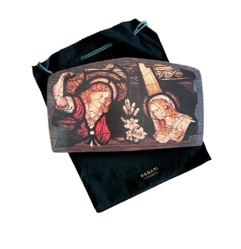 Generic - لوحة فنية بتصميم البشارة مصنوعة يدويا من الزجاج الملون مقاس 16 × 27 سم، لوحة فنية خشبية عريضة مع شنطة من القطيفة من باراتي ارت
