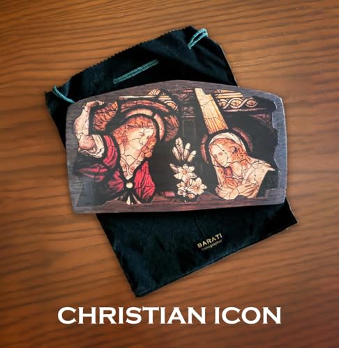 - أيقونة باراتي ارت المقدسة: تتميز بإعادة إنتاج عالية الجودة بالألوان الكاملة لعمل فني مسيحي من الزجاج الملون على سطح عريض.