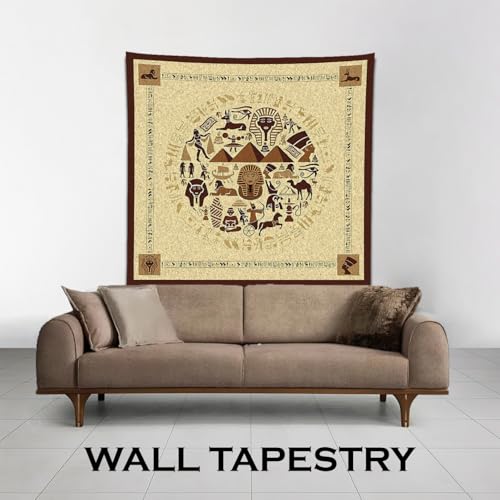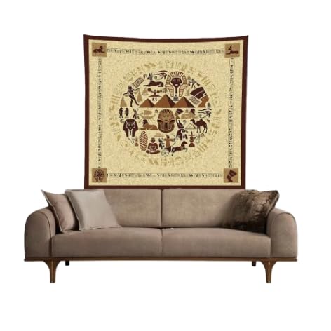 Generic - بساط حائط بتصميم فرعوني من قماش الشمواه بتصميم موتيف مصري قديم للتعليق على الحائط ولديكور المنزل والمكتب من باراتي ارت، مقاس 1.2 × 1.2 م، لون بيج/ بني