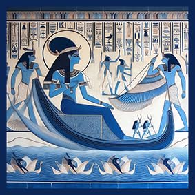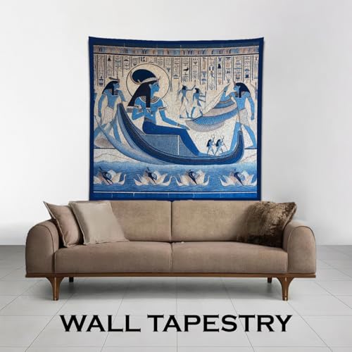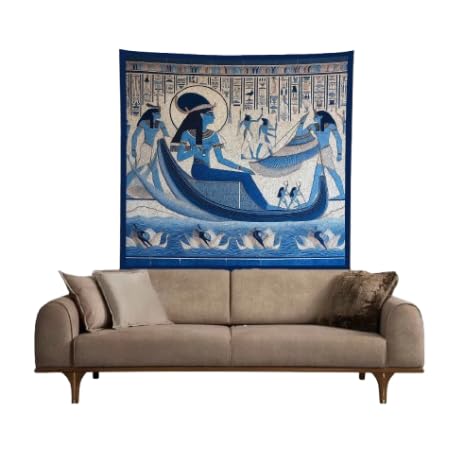 Generic - بساط حائط بتصميم فرعوني من قماش الشمواه بتصميم قارب نيلي مصري قديم للتعليق على الحائط ولديكور المنزل والمكتب من باراتي ارت، مقاس 1.2 × 1.2 متر، كبير، أزرق وأبيض