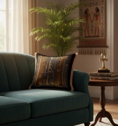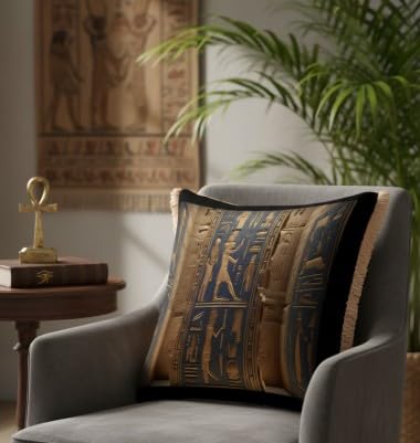 Generic - وسادة زينة فاخرة على الطراز المصري من باراتي ارت - وسادة ديكور فرعونية 45 × 45 سم - وسادة زينة لغرفة المعيشة وغرفة النوم