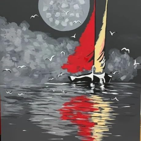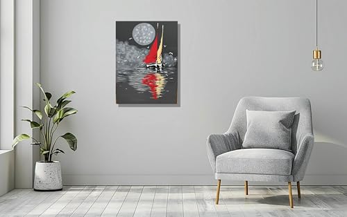 Generic - لوحة فنية بتصميم قمر وقوارب من باراتي - 120 × 90 سم من الاكريليك على القماش - لوحة فنية تجريدية بحرية كبيرة - ديكور منزلي عصري مصنوع يدويًا