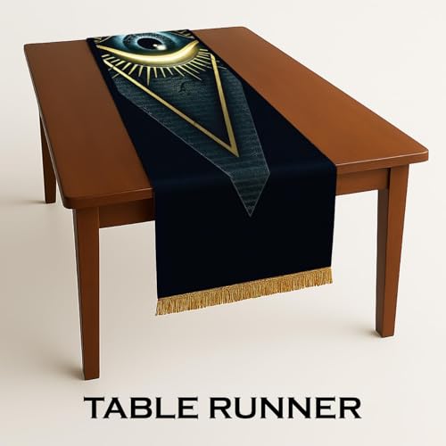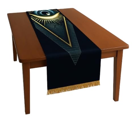 Generic - مفرش طاولة بتصميم عين حورس فرعونية من باراتي ارت - زخرفة هندسية عصرية داكنة - قماش فاخر بشراشيب للديكور الفاخر - 180 × 32 سم