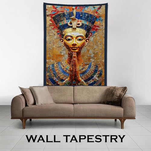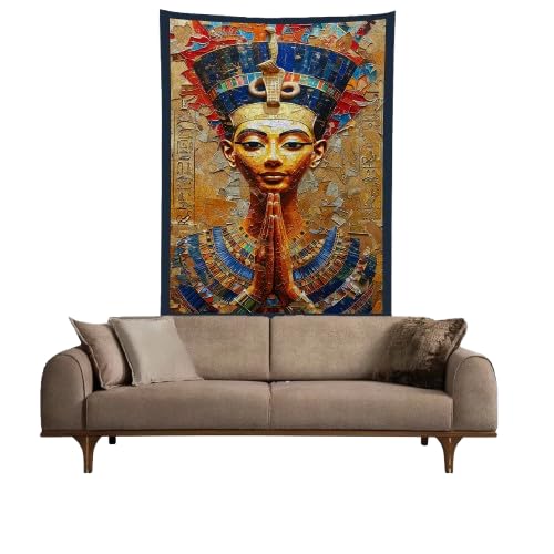 Generic - بساط حائط بتصميم شخصيات ملكية فرعونية من باراتي ارت (127 × 82 سم) - لوحة فنية من قماش الشامواه الفاخر - تصميم آلهة مصرية قديمة/فرعون - ديكور ثقافي للمنزل والمكتب