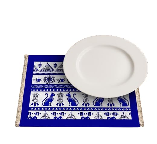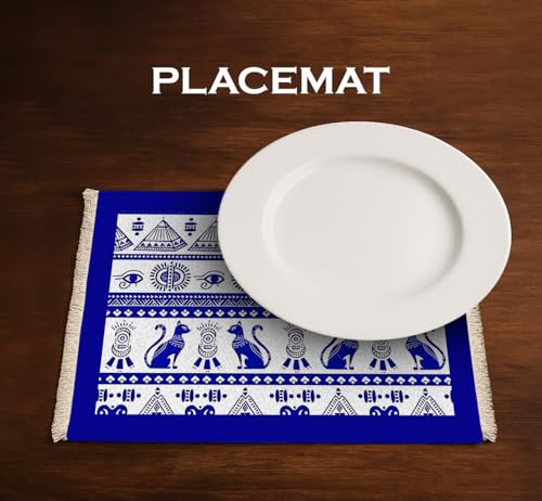 Generic - مجموعة من 5 مفارش طاولة قابلة للعكس من الجلد الصناعي (45 × 30 سم) - شكل فرعون أنيق باللونين الأزرق والبيج - مفارش طاولة متينة وقابلة للمسح لديكور طعام أنيق من باراتي ارت