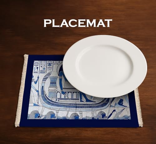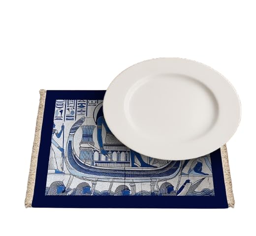 Generic - مفرش طاولة من جلد صناعي قابل للاستخدام على الوجهين بتصميم قارب مصري قديم، متين وسهل المسح، لطاولات الطعام والمطابخ العصرية، (45 سم × 30 سم)، من باراتي، 6 قطع، أزرق وأبيض