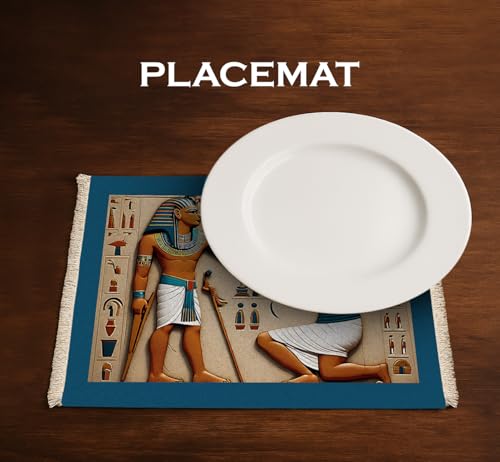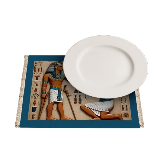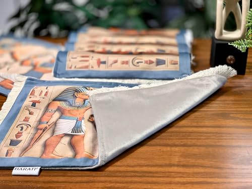 Generic - مجموعة مفارش أطباق من الجلد الصناعي بوجهين من باراتي ارت، بتصميم فرعون/ملكة، مفارش طاولة متينة وقابلة للمسح لديكور الطعام، 6 قطع (45 × 30 سم)