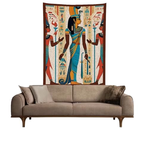 Generic - بساط حائط بتصميم فرعوني قائم من باراتي ارت (127 × 82 سم) - فن من قماش الشامواه الفاخر - زخرفة مصرية قديمة كاملة الشكل - ديكور ثقافي عمودي للمنزل والمكتب