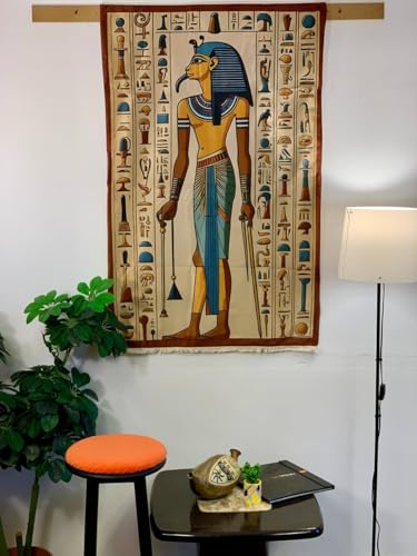 Generic - بساط حائط بتصميم مجسم ملكي قائم من باراتي ارت (127 × 82 سم) - قماش شمواه بيج وذهبي فاخر - فن فرعون مصري قديم / ملكة - ديكور ثقافي عمودي