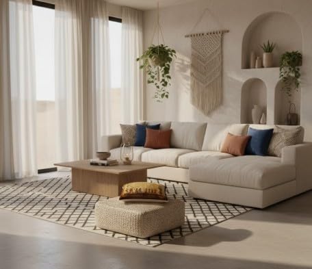 - تكمل لوحة الألوان الدافئة والريفية وتفاصيل الحواف المصنوعة من الجلد الصناعي بشكل مثالي الديكور البوهيمي أو الانتقائي أو المستوحى من العالم.
