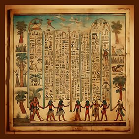 - تتميز بطباعة غنية ومفصلة وعالية الجودة لمشهد مستوحى من الهيروغليفية مع شخصيات بشرية ونخيل ورموز قديمة.