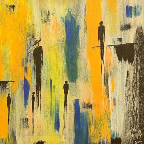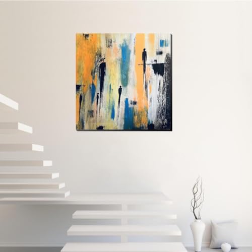 Generic - لوحة فنية جدارية تجريدية عصرية من باراتي ارت بتصميم غريب في الليل، لوحة يدوية اكريليك على القماش، 75 × 75 سم، تابلوه يدوي الصنع لديكور المنزل والمكتب