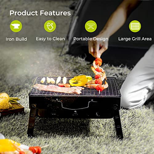 Royalford - شواية فحم RF10358 قابلة للطي بهيكل حديدي متين وحامل، مناسبة للاستخدام على سطح الطاولة وللتخييم الخارجي