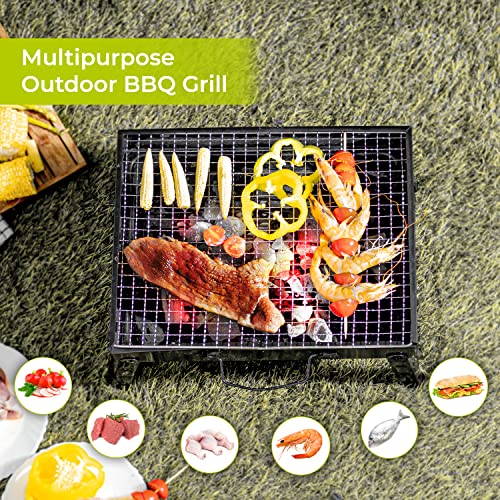 - أداة شواء مثالية: يبلغ حجم شبكة الشواء 35 × 27 × 20 سم، ومناسبة لحفلات الشواء للعديد من الأشخاص. شواية التخييم مناسبة لطهي الطعام اللذيذ مثل لحم الخنزير والأسماك والخضروات وشرائح اللحم والهوت دوج والذرة وما شابه، يمكنك استخدام الشواية القابلة للطي في شرفات المباني والحديقة والفناء الخلفي.