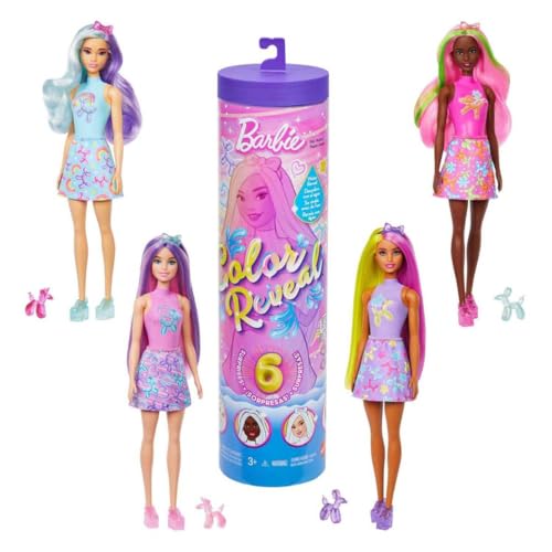Barbie - باربي دمية واكسسوارات كولور ريفيل، سلسلة حيوانات البالون، 6 مفاجآت تتضمن تغيير اللون وحيوان بالون صغير (قد تختلف الأنماط)، JFV58
